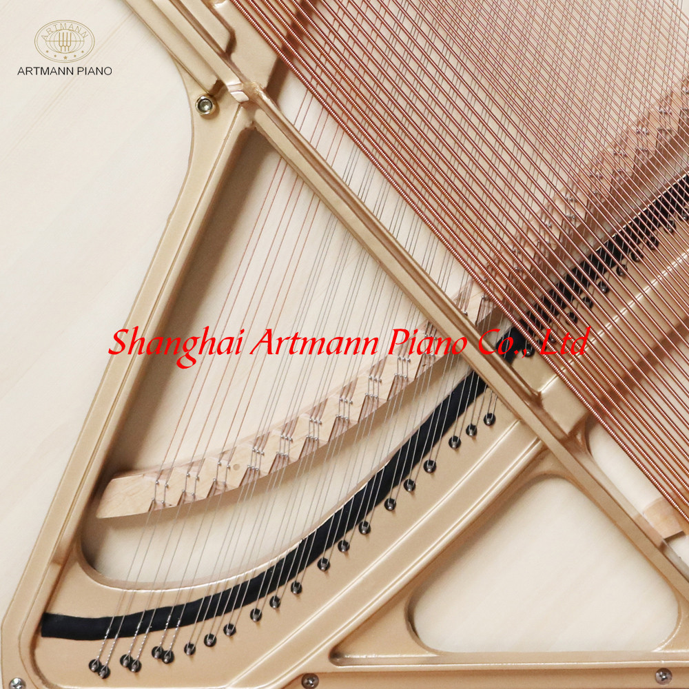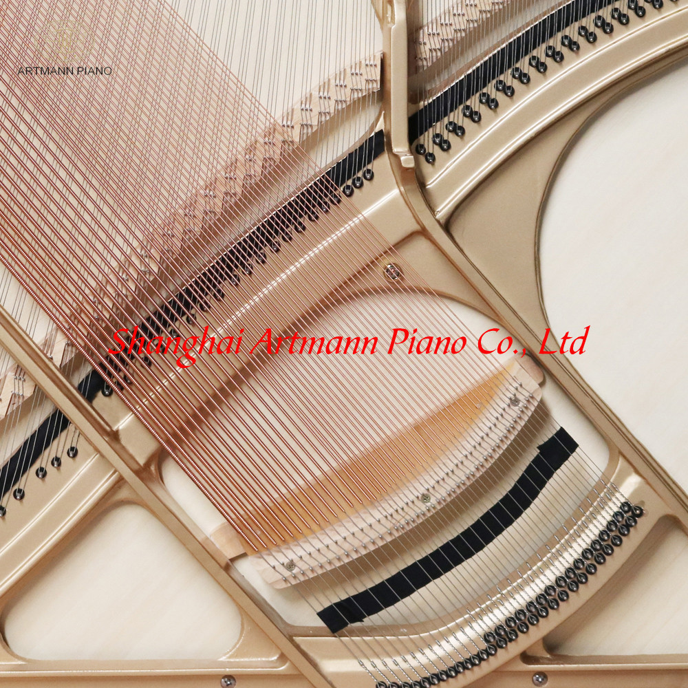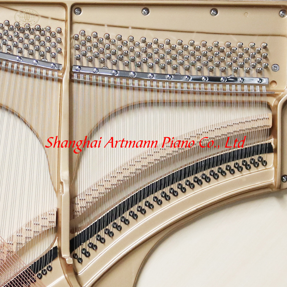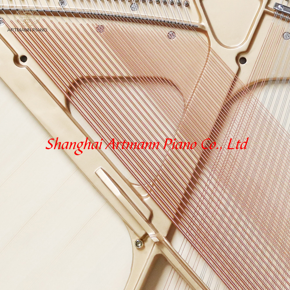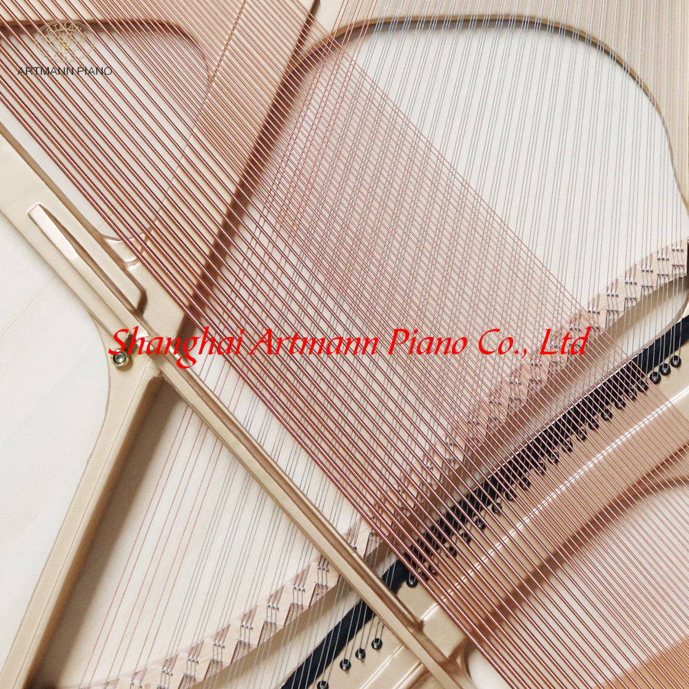 雅特曼钢琴特别采用德国Roslaü镀锡琴弦钢丝,使低音更深厚,高音更明亮:纯手工制造的弦码以及只用在三角琴,高级立式钢琴的垫弦钮,使每根琴弦的有效弦长更精确;保证了低、中、高部音色的自然过渡。使音色更丰富,表现更卓越。