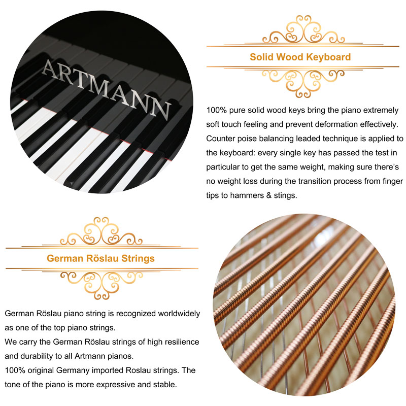 With exquisite design and high quality raw material, Artmann GP-160 has won widely welcome by not only plenty of homes, but also big amount of music schools and conservatories. It’s a piano that can be enjoyed by everyone at anytime.