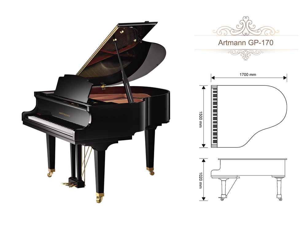 Masterpiece of German design master with smooth lines, magnificent appearance and good taste. It shows the splendid performance of Artmann Piano to the musicians. With a powerful and rich tone, every note of Artmann GP-170 grand piano will bring you big surprise.